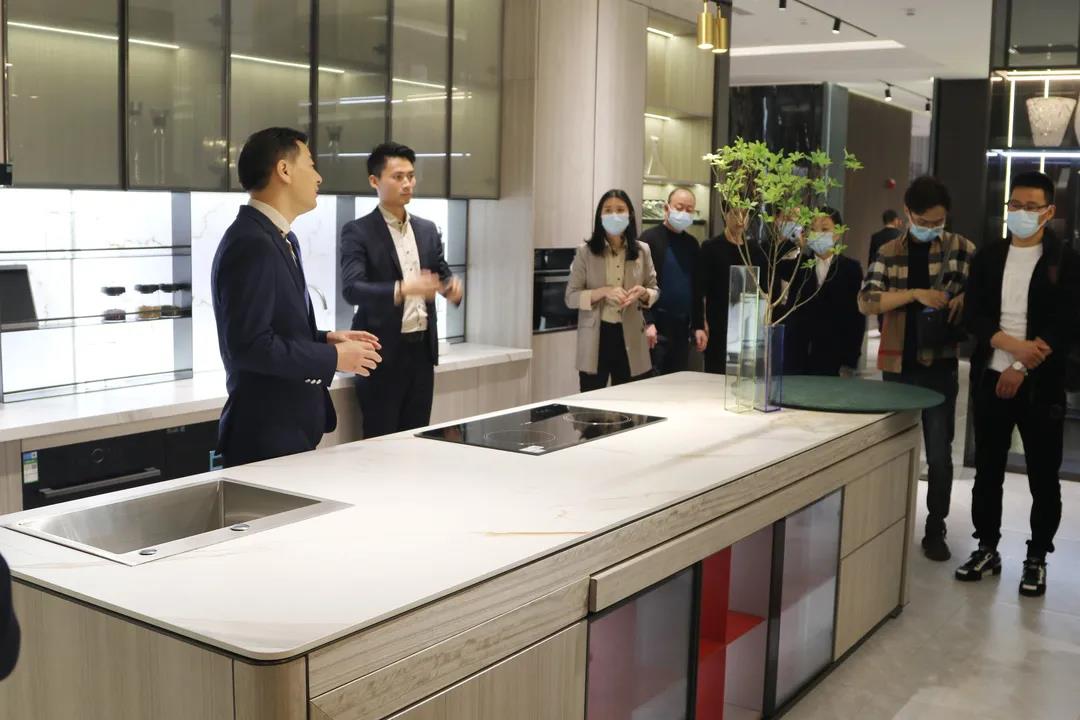 隨后,嘉賓們迫不及待地移步至位于集團營銷中心三樓的新品牌【西瑞】展廳。在潮味十足的展廳內,集團營銷總經理陳玉偉先生圍繞著新時代下家居行業的發展趨勢,對西瑞產品架構和矩陣進行了深度解析,并為嘉賓們全方位介紹了西瑞的產品定位,材質工藝,以及“整裝定制·全案設計”的發展方向。全新的設計視角、個性十足的產品設計引來了現場嘉賓們的駐足品鑒。系列產品的“時尚新銳”、“潮流大氣”、“高級質感”、以及極具新青年格調的定制空間贏得了現場嘉賓的由衷贊譽和高度認可。