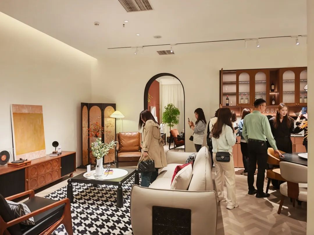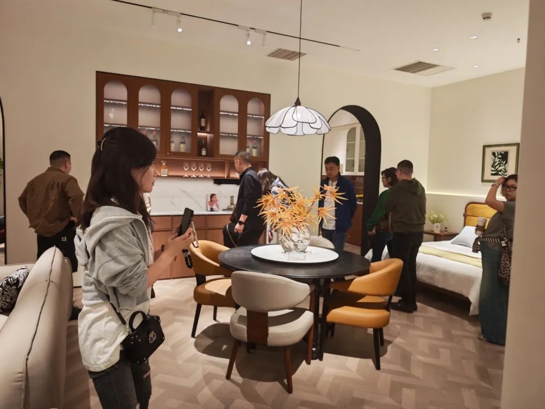 新品發布品鑒會現場,我們中古全案憑借獨特的空間布局,創新的時尚設計,優質的材料細節以及精心的場景營造,吸引了全國優秀經銷商及業界嘉賓們的目光,他們沉浸在高級的美學世界里,感受創新與品質交織的魅力。我們中古展廳里人潮涌動,眾多經銷商都對中古全案新品的創新設計稱贊有加,現場簽約不斷,氣氛熱烈。